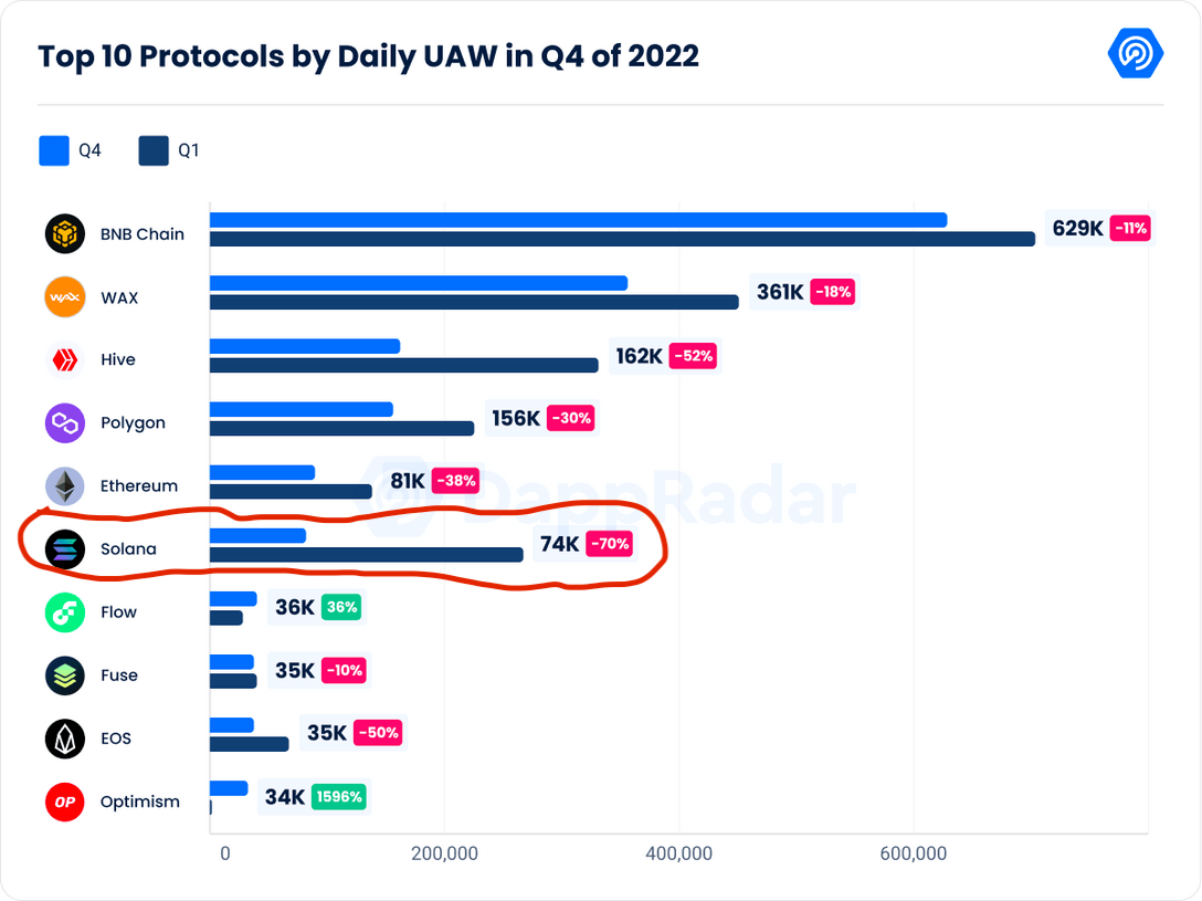 Solana dropped 70% compared to Q1 2022, and Harmony is entirely out of the top 10.