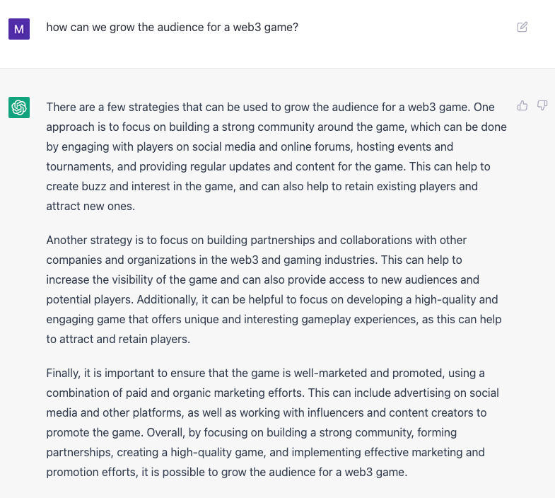 We got to play with the AI that has taken over the news during the weekend. It is called ChatGPT. We asked it a few questions about Web3 games. Here's what it had to say.
